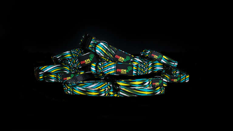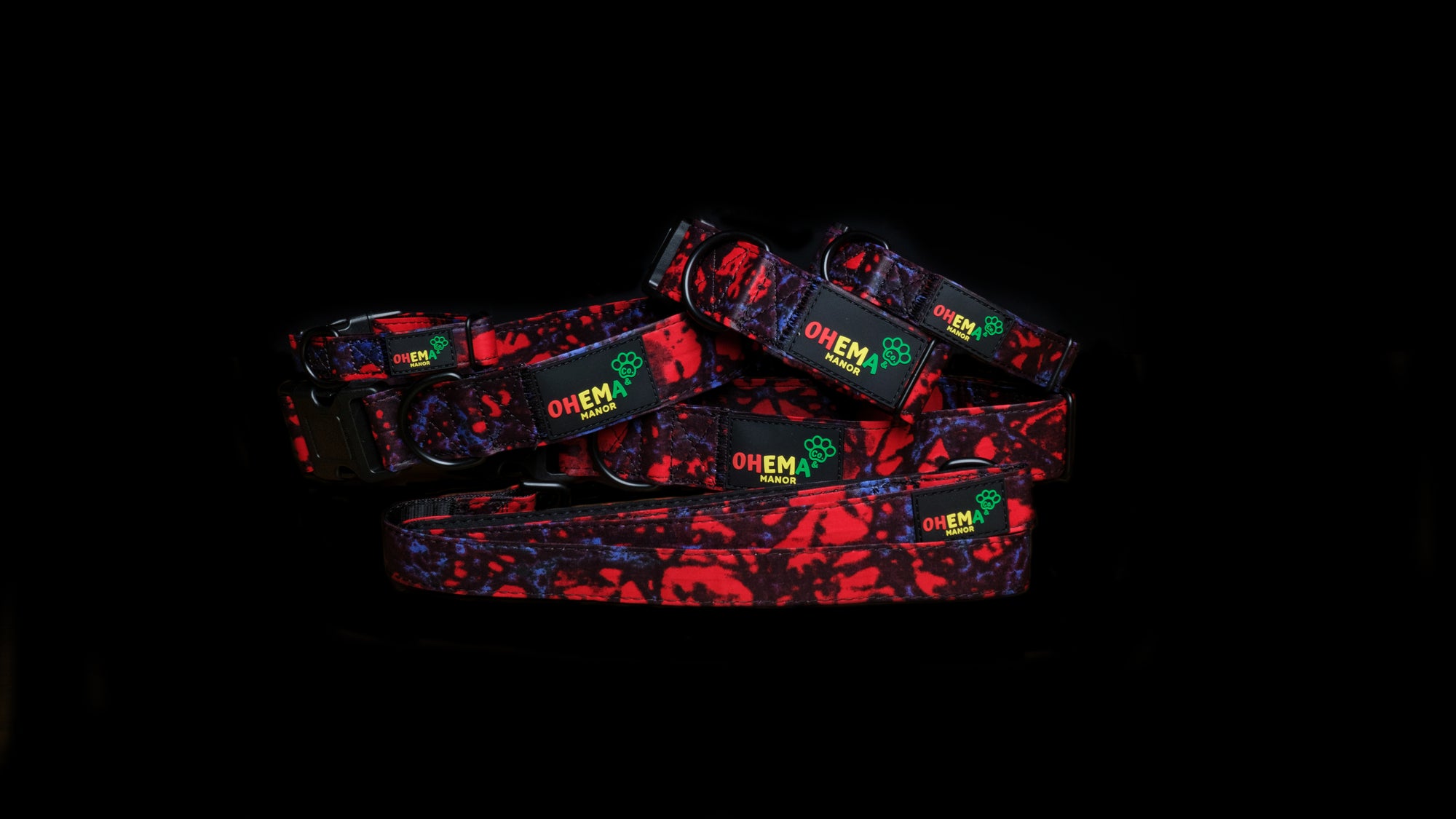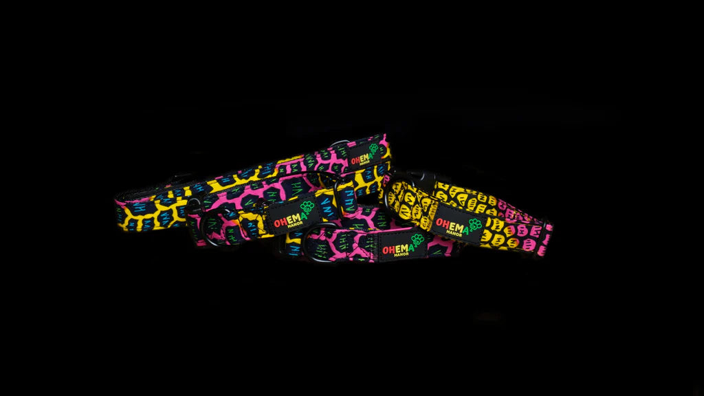 The Onyx dog collection draws inspiration from our alpha female, Onyx, resembling a panther in both presence and appearance. Reflecting her boldness and elegance, the collar features rich colors and a mesmerizing arabesque pattern, embodying Onyx's commanding spirit.