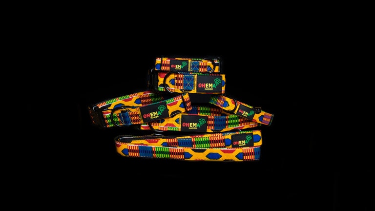 Attention pet lovers! Introducing the Sheeba Collection, inspired by our lively middle pup. Elevate your pup's style effortlessly with our unisex Kente print collar in bold colors. The playful mix of plaids and stripes adds sophistication. Grab the Sheeba Collection collar now for vibrant elegance!.